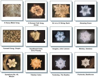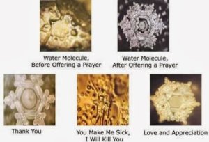 The treated (prayer and intention) and untreated samples were sent to Emoto’s lab in Japan where 40 unique water molecules were photographed. 100 volunteers evaluated the photographs and rated them on aesthetic appeal. The results showed that the water with prayer and intention resulted in “more pleasing crystal shapes” than water that did not receive this treatment (Radin et al., 2006).