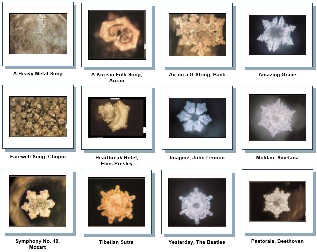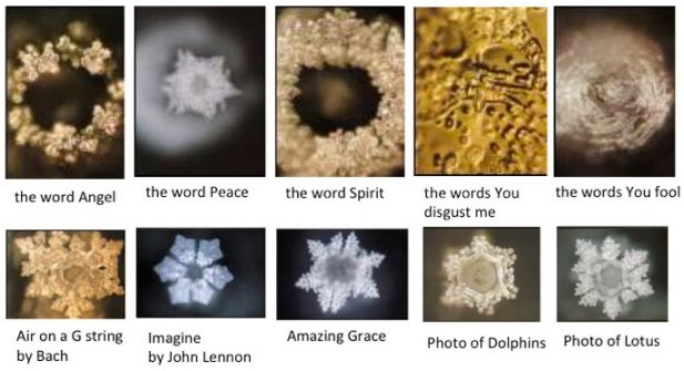 - Observe the crystal of frozen water after showing letters to water